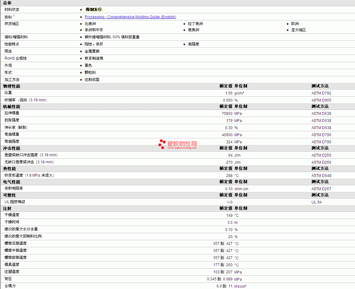 | 弯曲强度 | 324 | MPa | ASTM D790 |