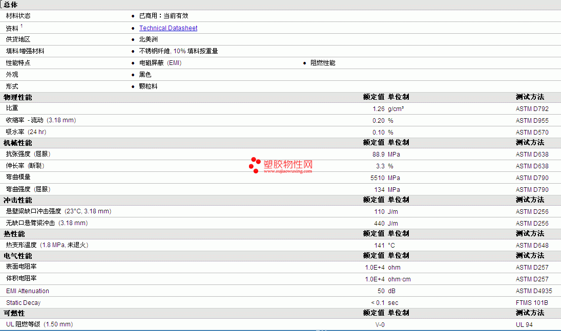 Electrablend PC SS10 FR BK 物性表详细情况如图