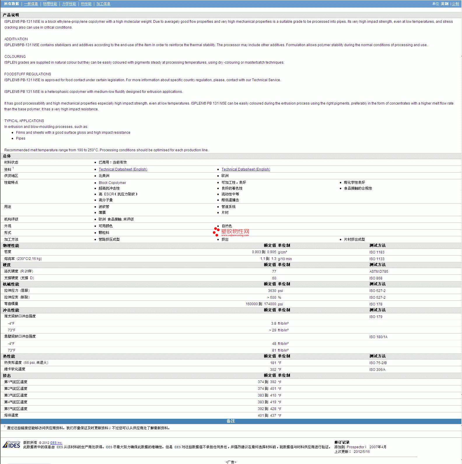 如需了解ISPLEN PB-131 N5E物性表更多详情,ROHS(SGS)报告、物质安全资料表(MSDS)、材质证明、UL黄卡等,最新行情报价等可来电咨询:曾先生:18606048646 QQ:1078333107