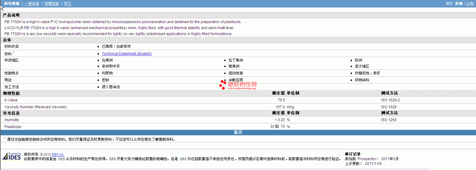 Lacovyl PB 1702H 物性表