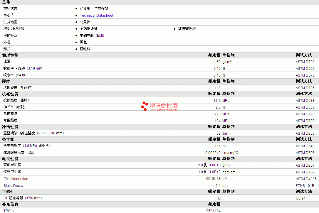 | 机械性能 | 额定值 | 单位制 | 测试方法 |