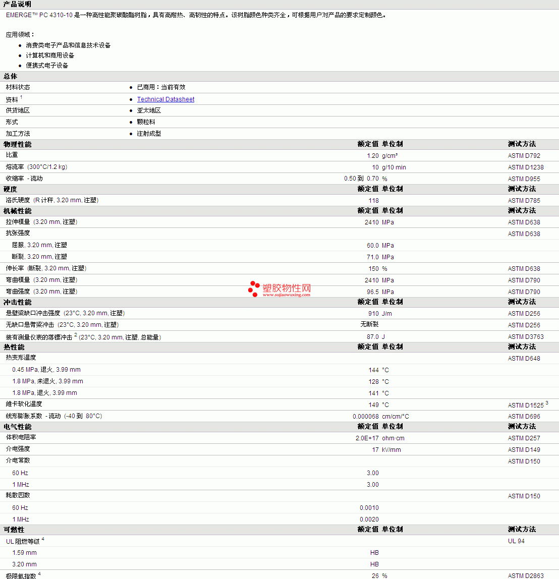 EMERGE PC 4310-10塑胶原料更多详情,PC专家,可来电咨询或QQ:767320520