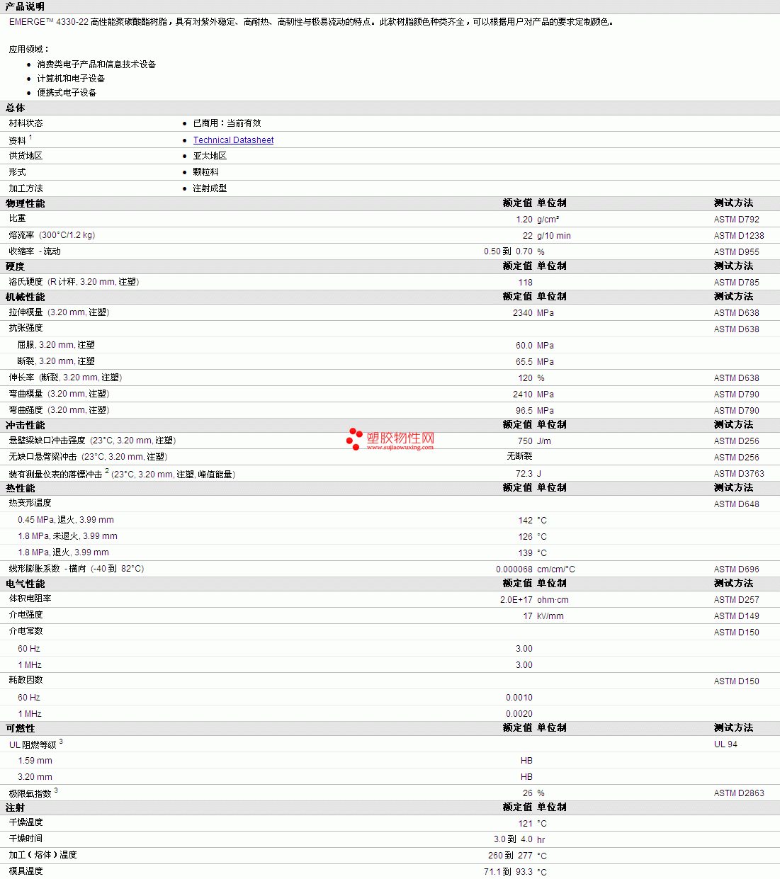 更多EMERGE PC 4330-22材质证明、UL黄卡、物质安全资料表(MSDS)、报价、等可来电咨询或QQ:767320520