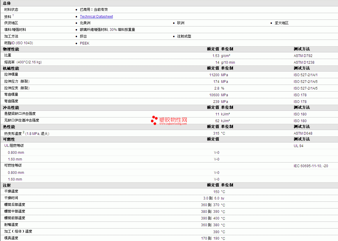 | 拉伸应力 (断裂) | 174 | MPa | ISO 527-2/1A/5 |