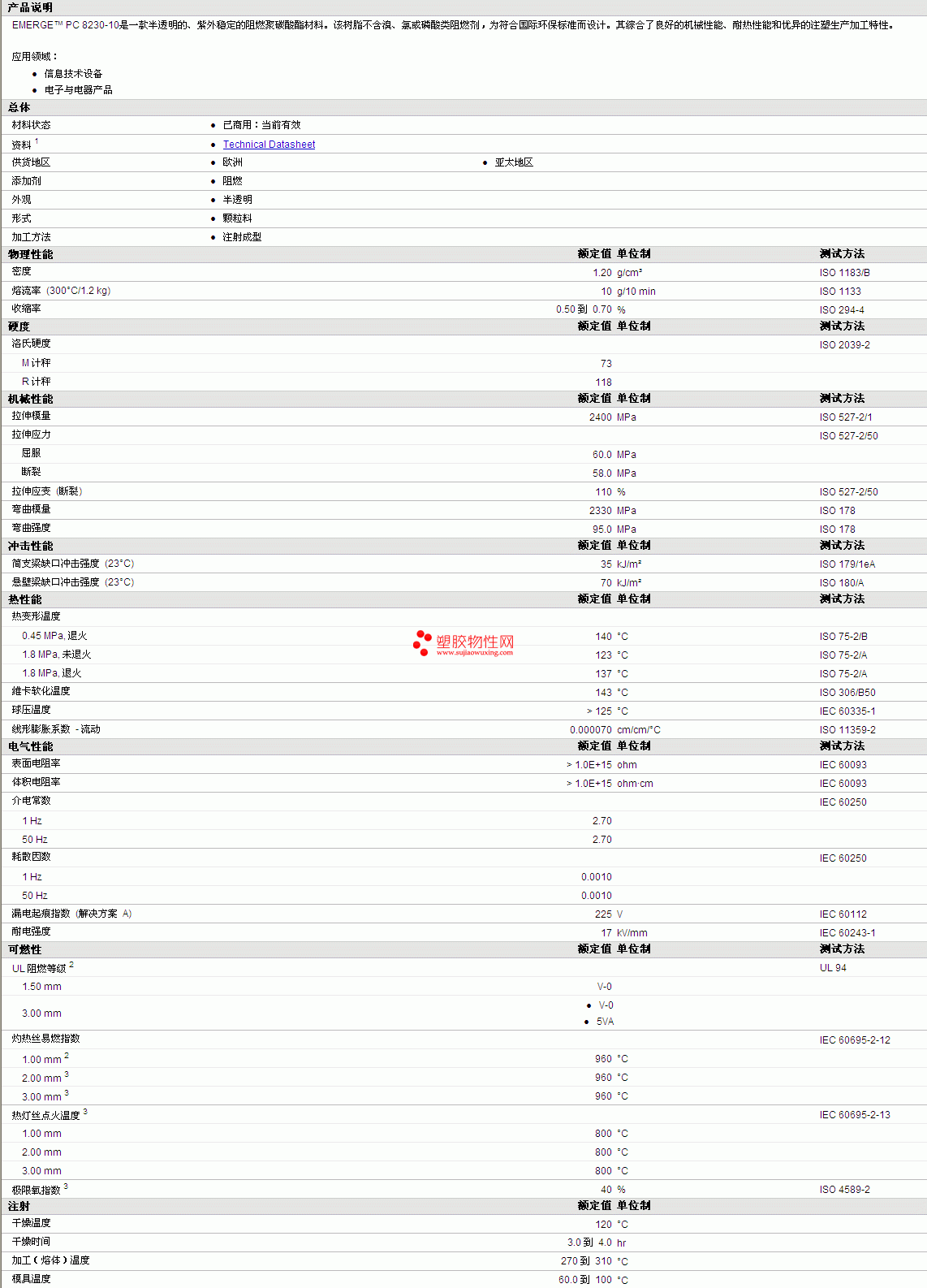 需了解EMERGE PC 8230-10物性表更多详情,材质证明、ROHS(SGS)报告、物质安全资料表(MSDS)、UL黄卡等,最新行情报价等可来电咨询或QQ:767320520