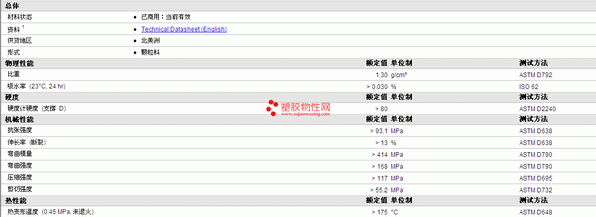 | 机械性能 | 额定值 | 单位制 | 测试方法 |