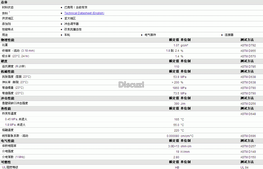 五大工程原料物性表