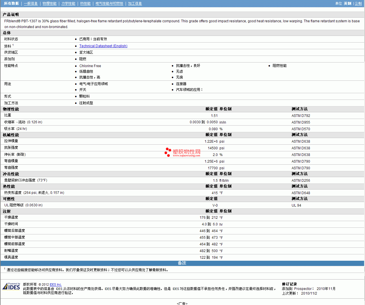 如需了解FRblend PBT-1307物性表更多详情,ROHS(SGS)报告、物质安全资料表(MSDS)、材质证明、UL黄卡等,最新行情报价等可来电咨询:曾先生:18606048646 QQ:1078333107