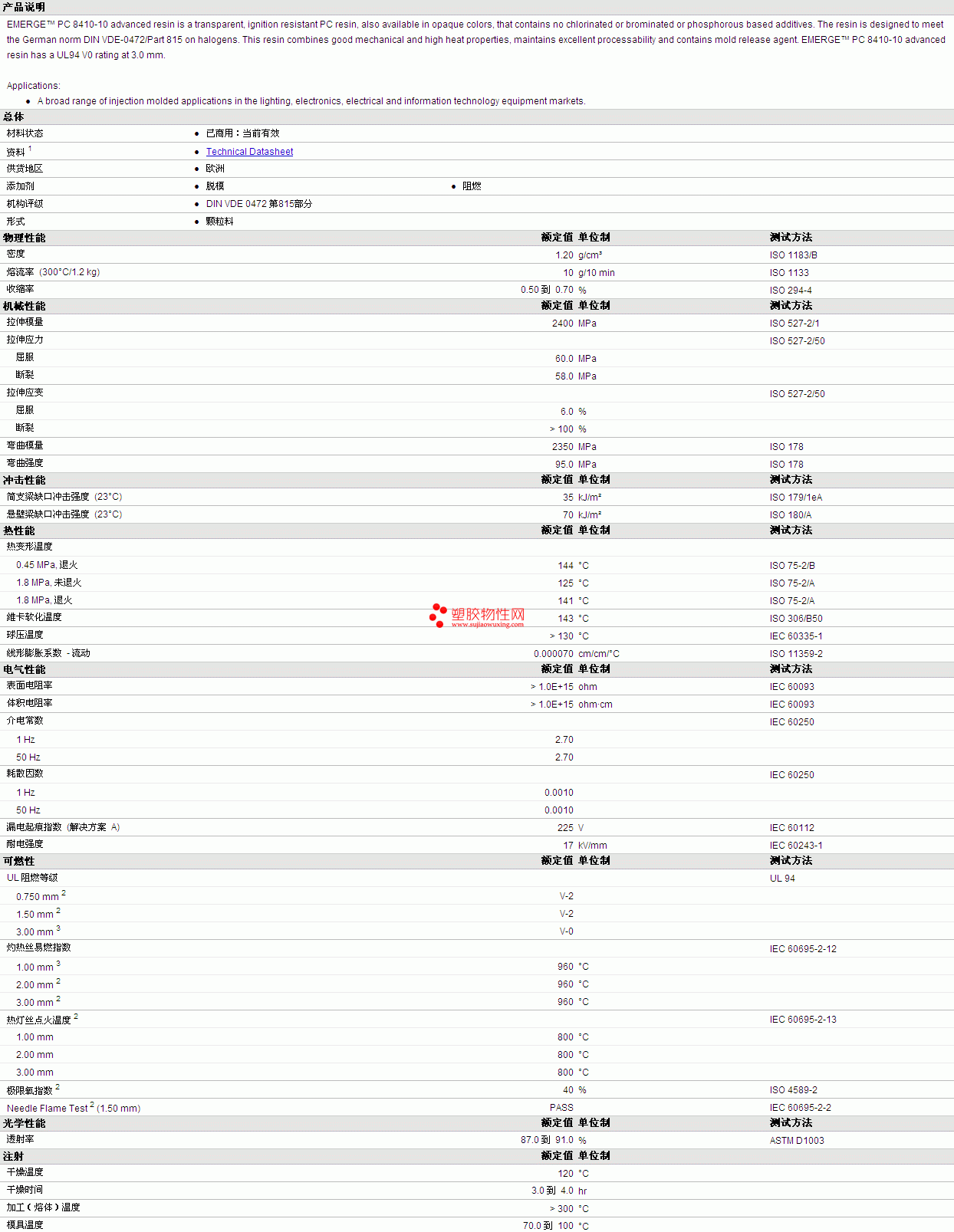 需了解EMERGE PC 8410-10 物性表材质证明、ROHS(SGS)报告、物质安全资料表(MSDS)、UL黄卡等可来电咨询或QQ:767320520