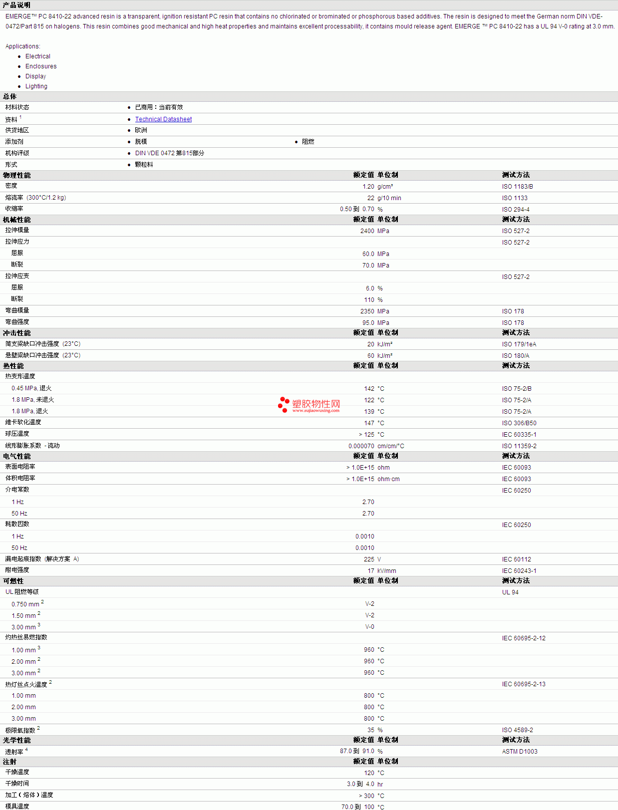 需了解EMERGE PC 8410-22、ROHS(SGS)报告、物质安全资料表(MSDS)、UL黄卡等可来电咨询或QQ:767320520