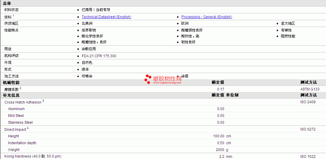 VICOTE PEEK F806 Natural 物性表详情见附件