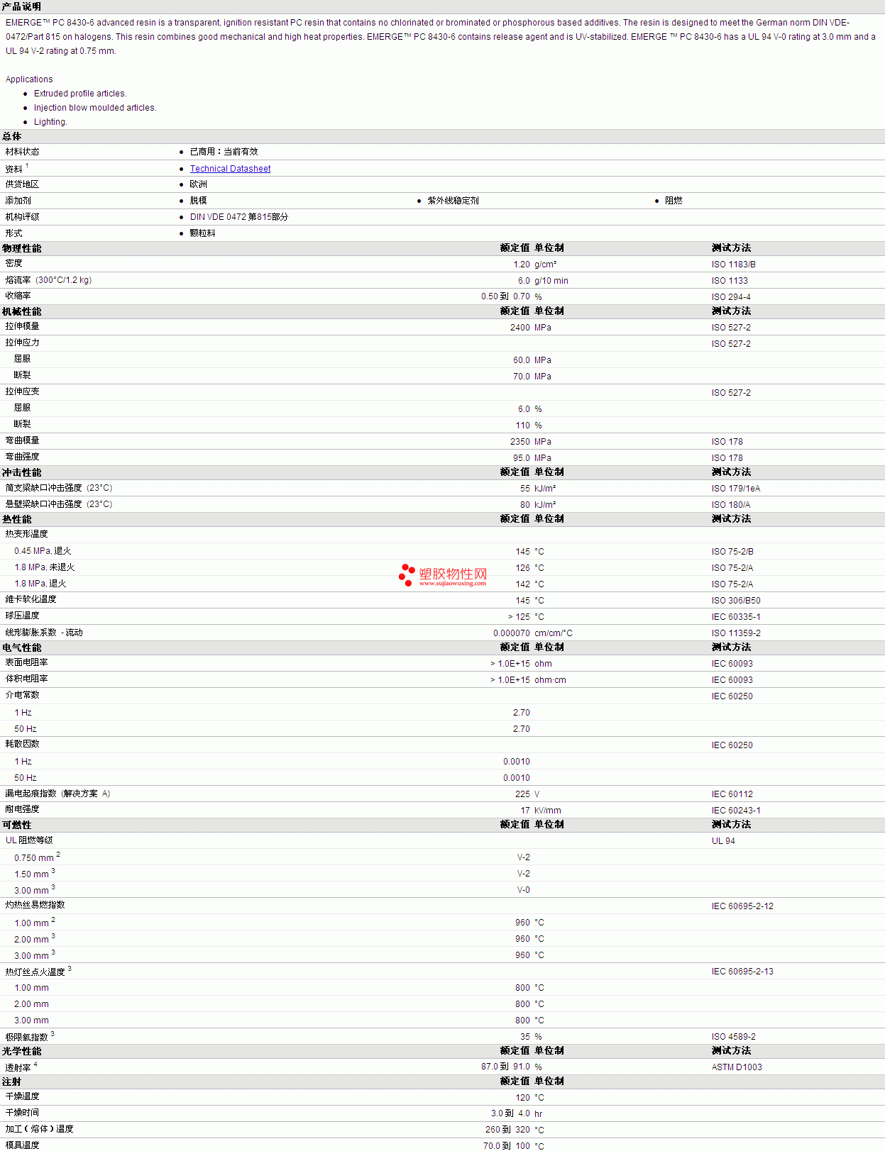 EMERGE PC 8430-6物性表更多资料见图