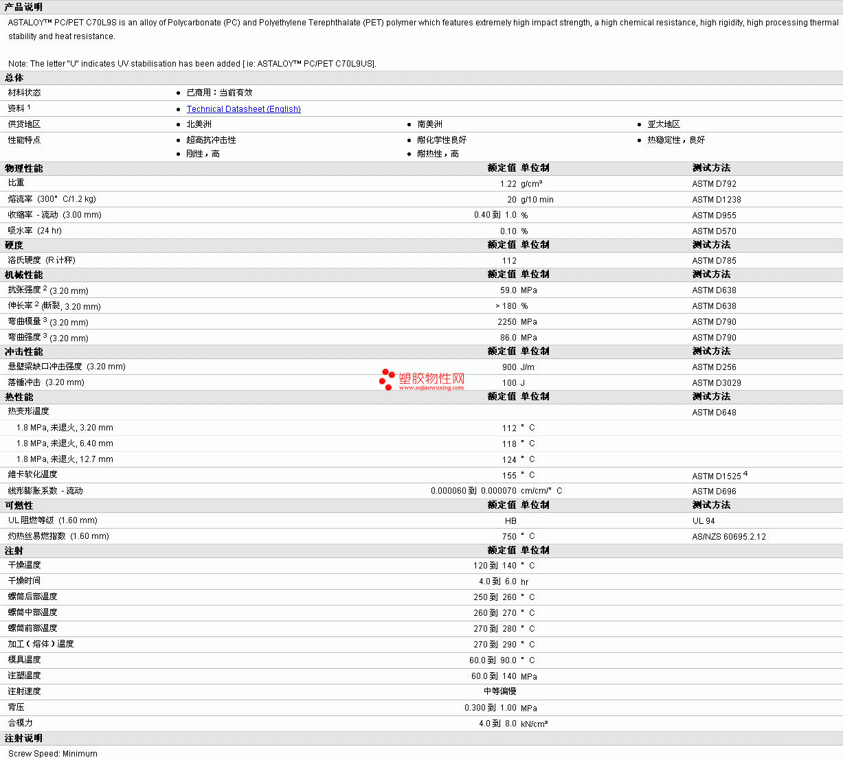 ASTALOY™ PC/PET C70L9S物性表更多资料见图