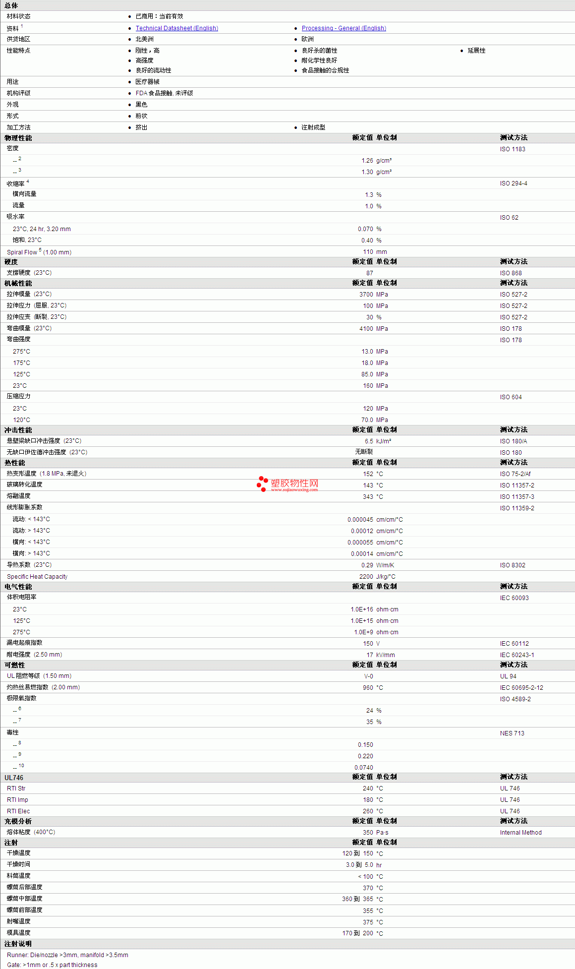 | 物理性能 | 额定值 | 单位制 | 测试方法 |