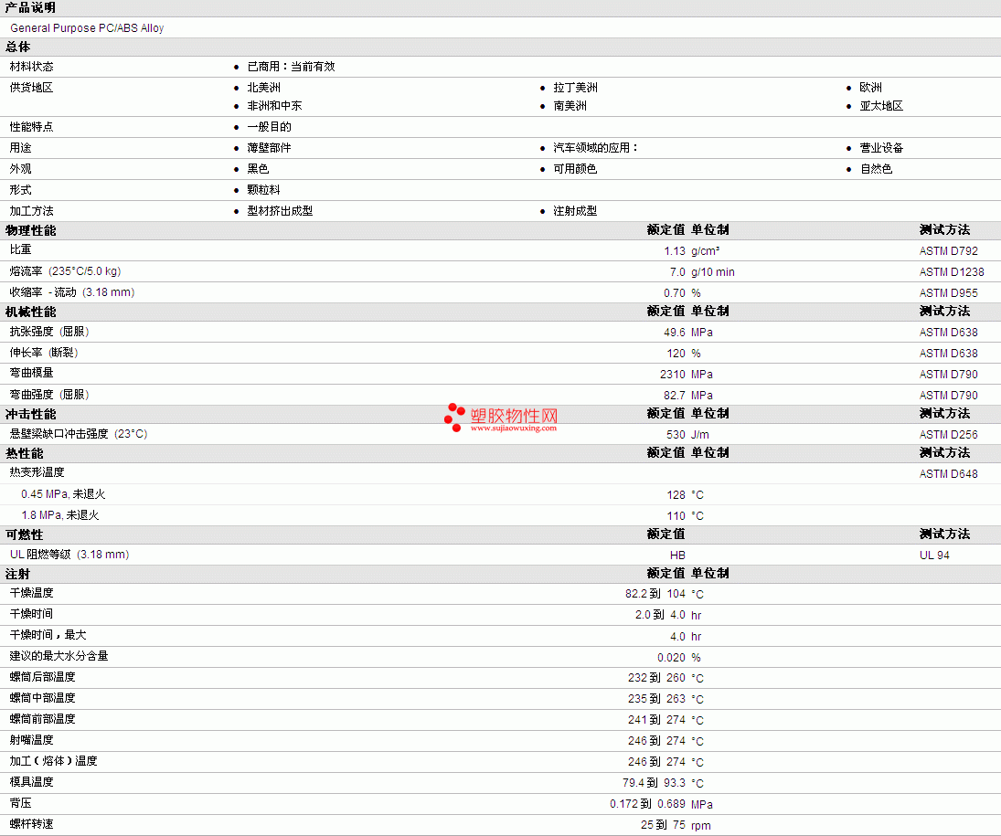 EnCom PC-ABS 0710物性表更多资料见图