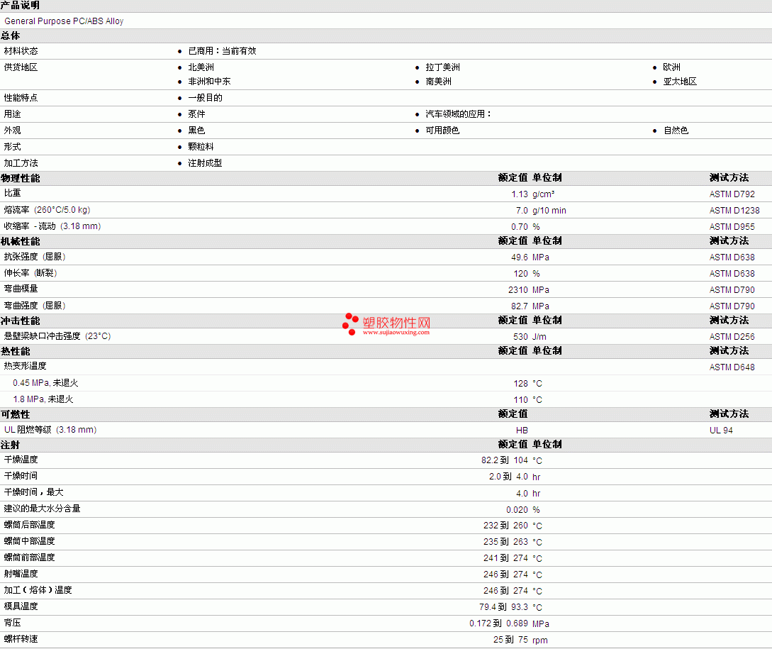 EnCom PC-ABS 7000物性表详情见附件