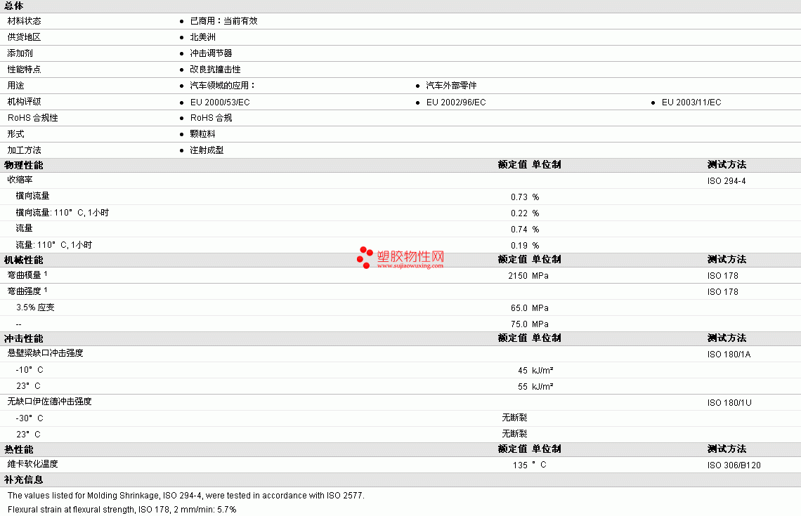 其他工程塑料物性表