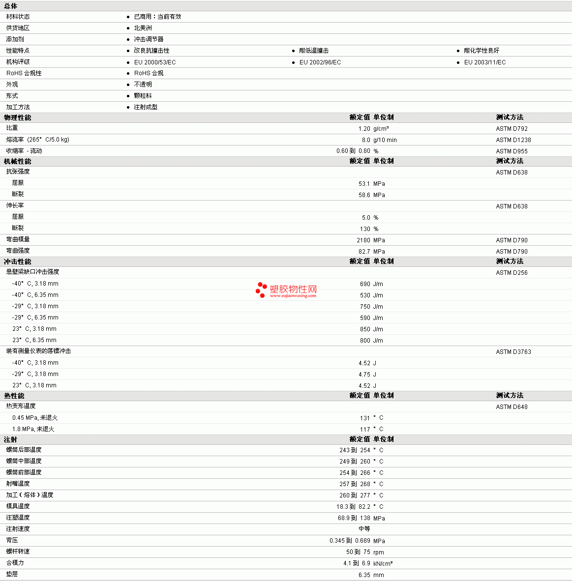 其他工程塑料物性表