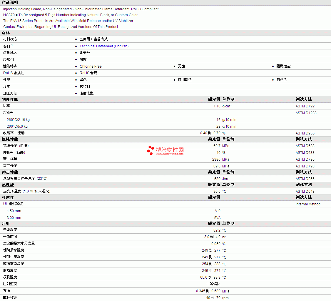 ENVIROLOY ABS+PC ENV15-NC370 物性表更多资料见图