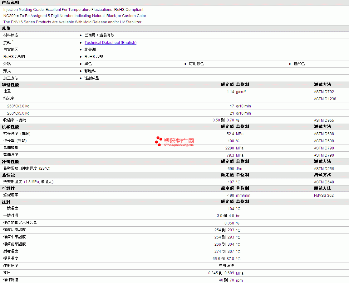 ENVIROLOY ABS+PC ENV16-NC290物性表详情见附件