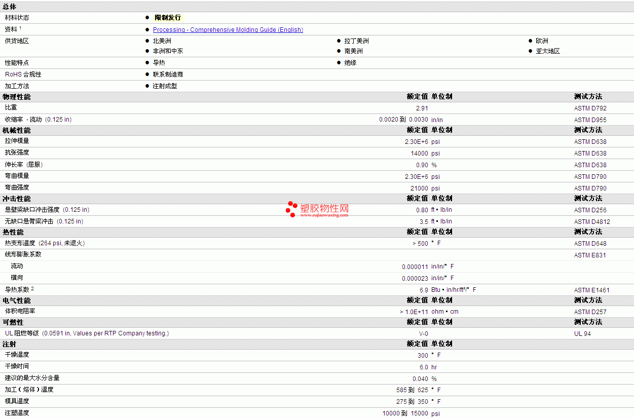 | 拉伸模量 | 2.30E+6 | psi | ASTM D638 |