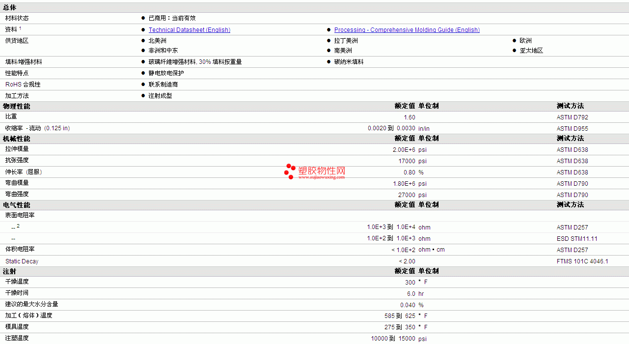 | 弯曲模量 | 1.80E+6 | psi | ASTM D790 |