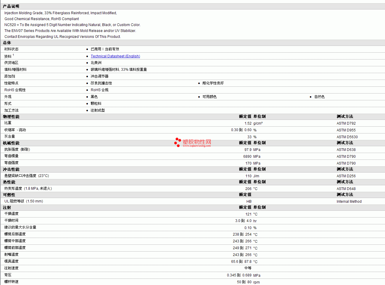 ENVIROPLAS PBT ENV07-NC520物性表 见图片