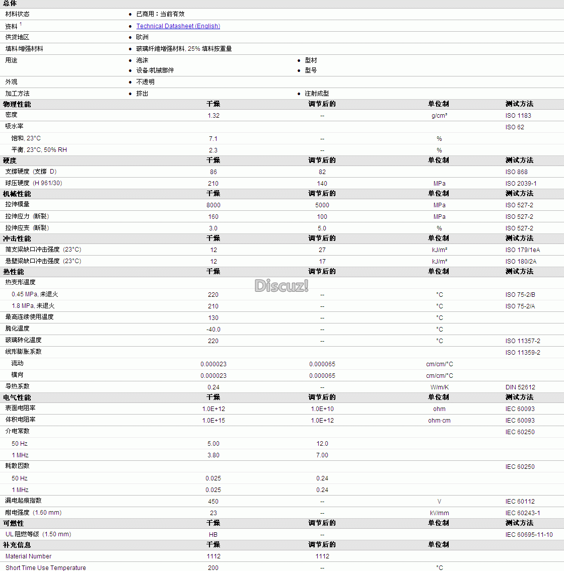 Kern PA6 GF25物性表详细内容如图