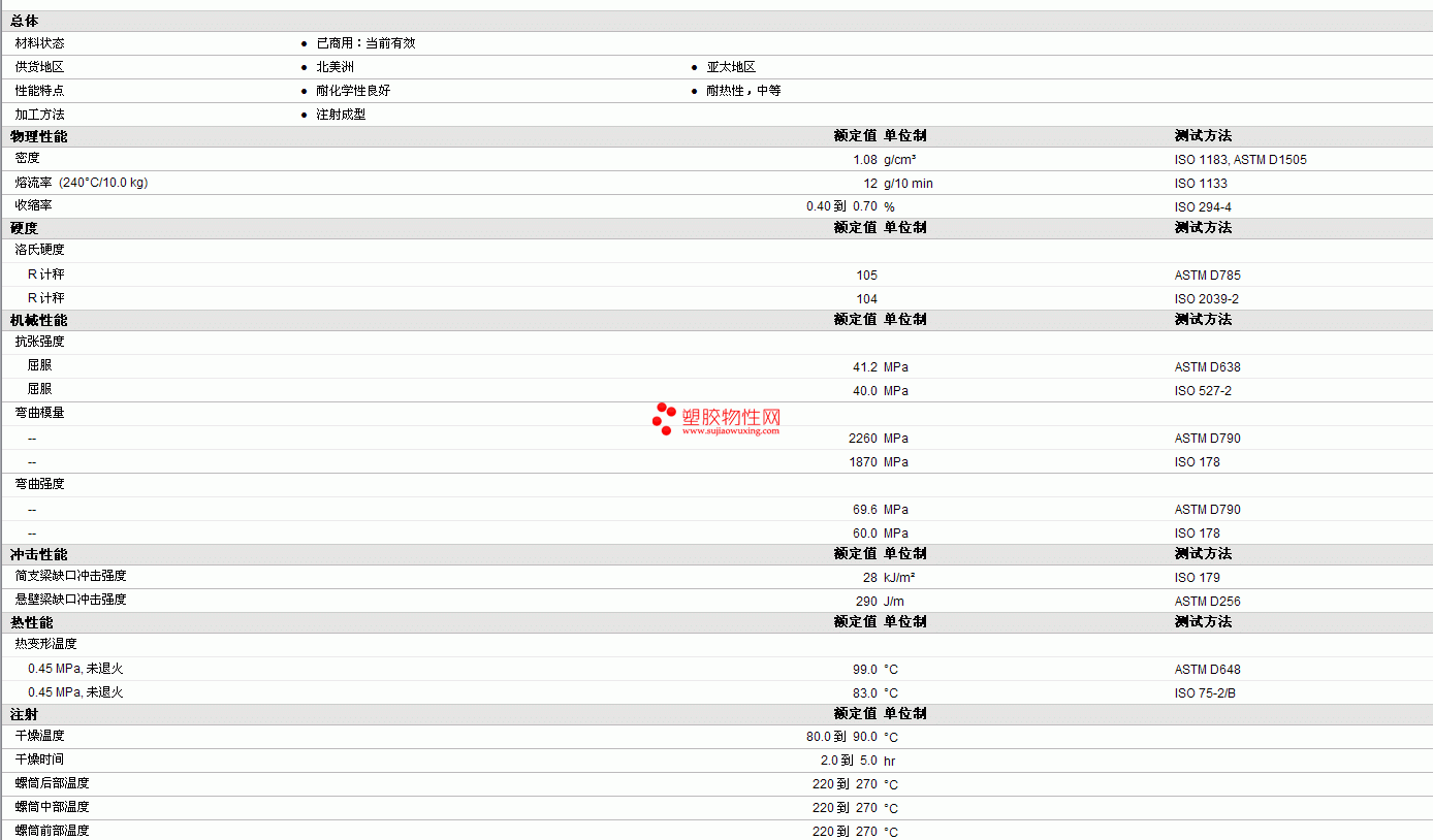 EXCELLOY ABS/PBT TK10物性表 见图片