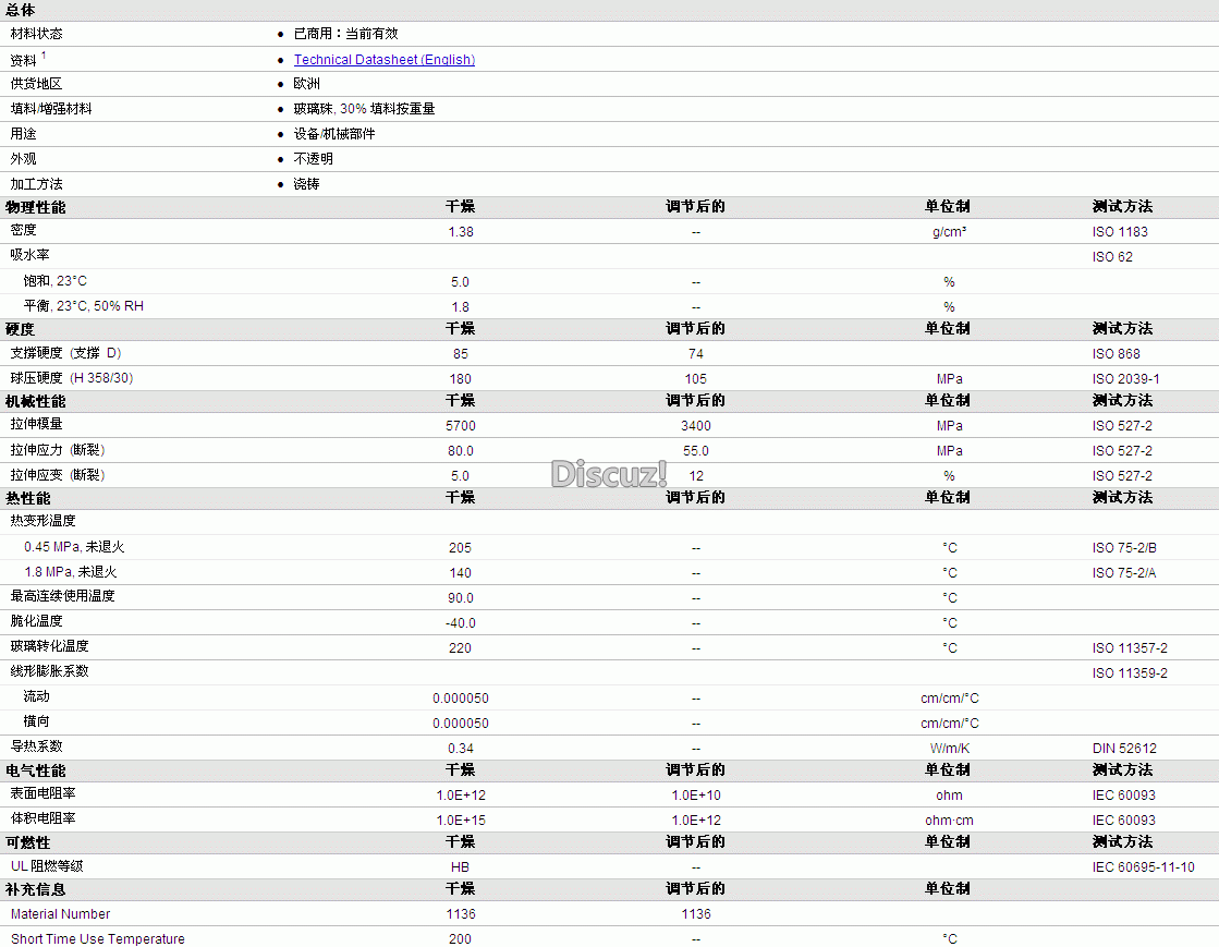 Kern PA6 G GB30物性表详情如图所示