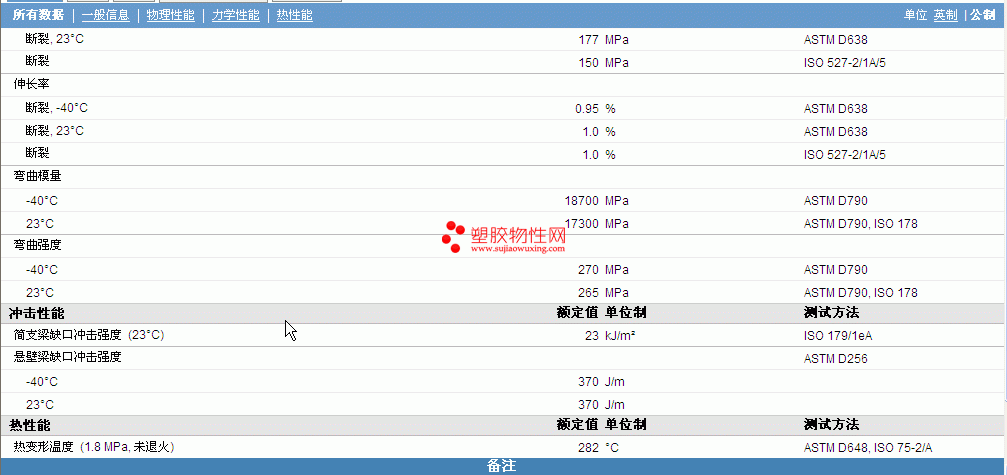 | 机械性能 | 额定值 | 单位制 | 测试方法 |