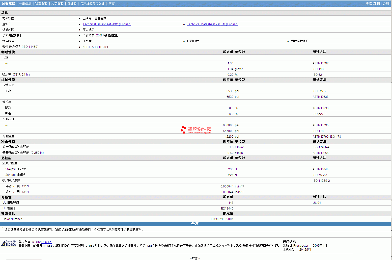 Duranex PBT/ABS 601SA 物性表 更多资料见图