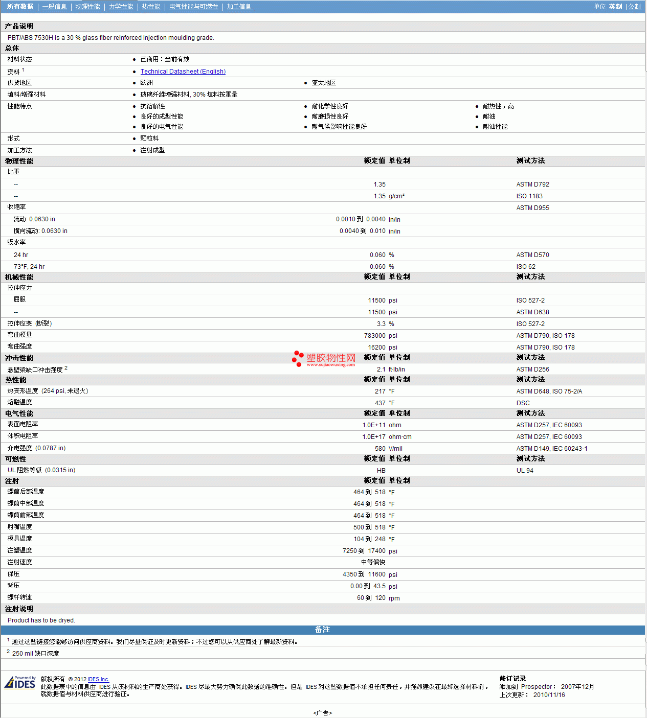 LONGLITE PBT 7530 H物性表 详细情况如图
