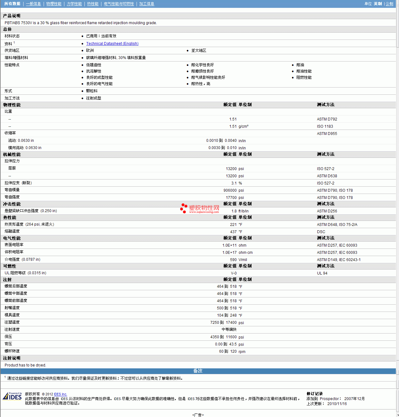 LONGLITE PBT 7530 V 物性表 更多资料见图