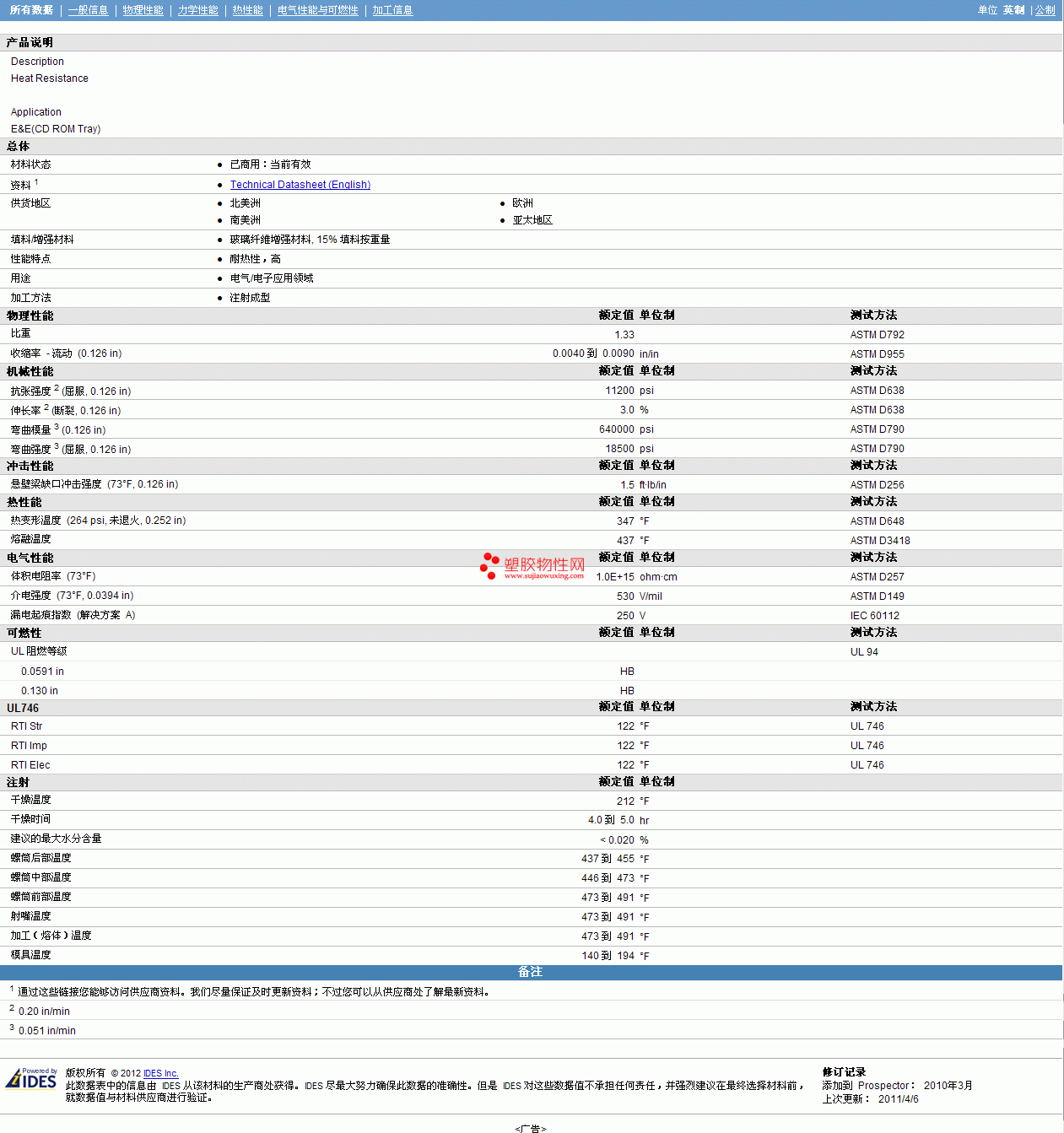 其他工程塑料物性表