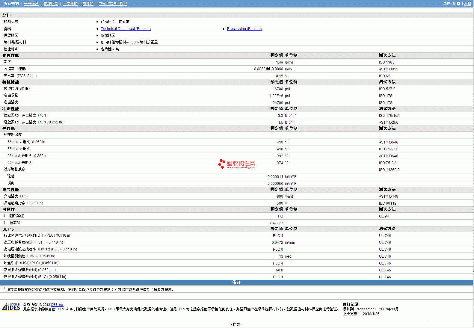 | 收缩率 - 流动 | 0.0030 到 0.0060 | in/in | ASTM D955 |