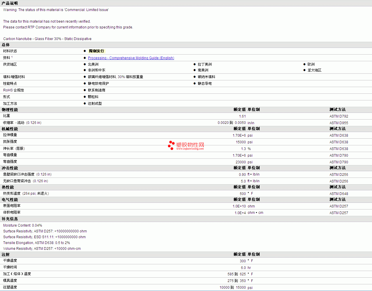 RTP Compounds pps 1399 X 87259 A物性表 详情见附件