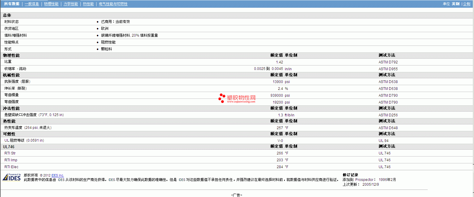其他工程塑料物性表