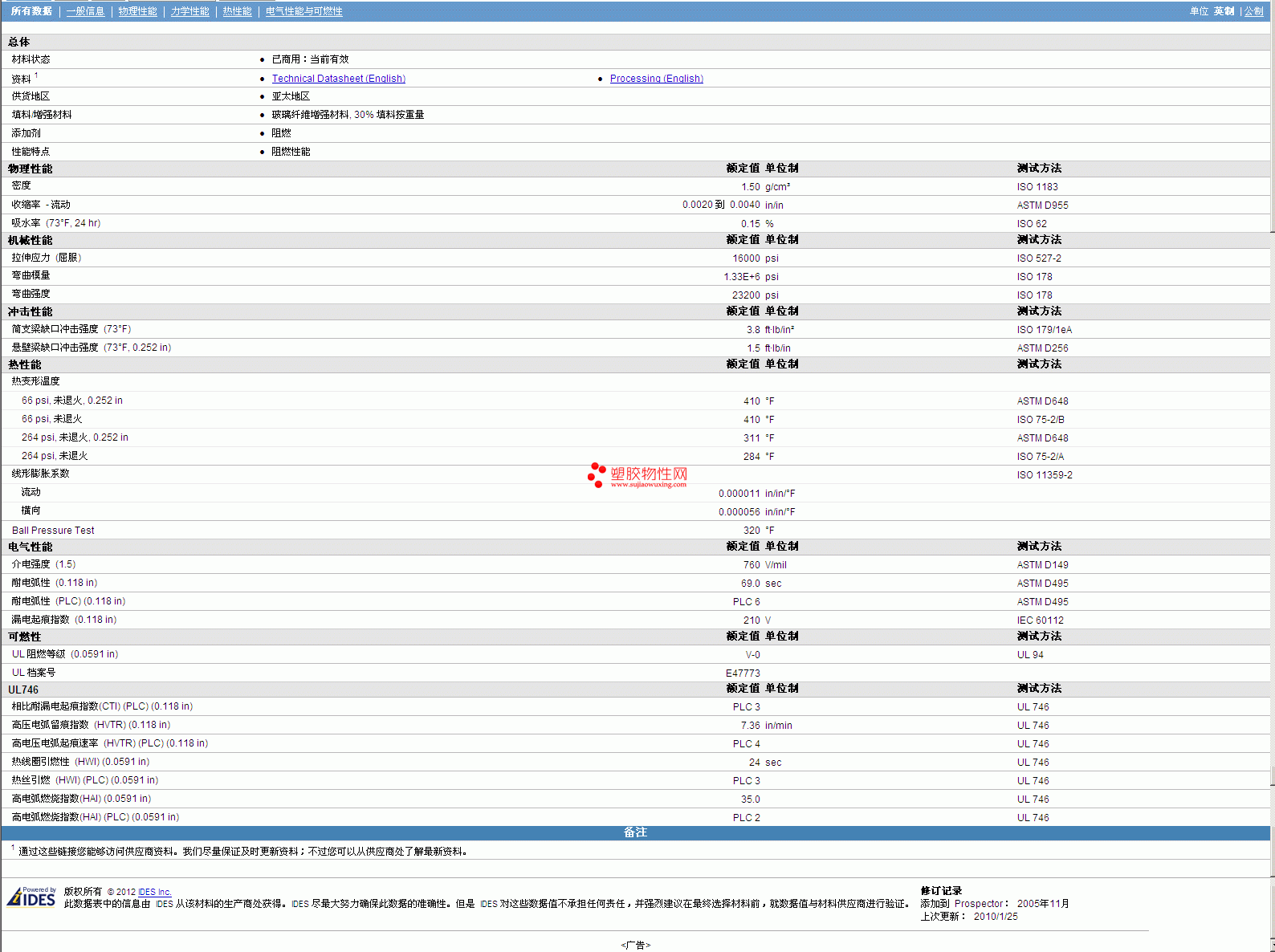 其他工程塑料物性表