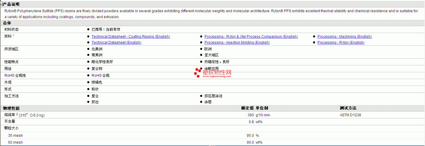 Ryton pps P-6物性表 详情见附件