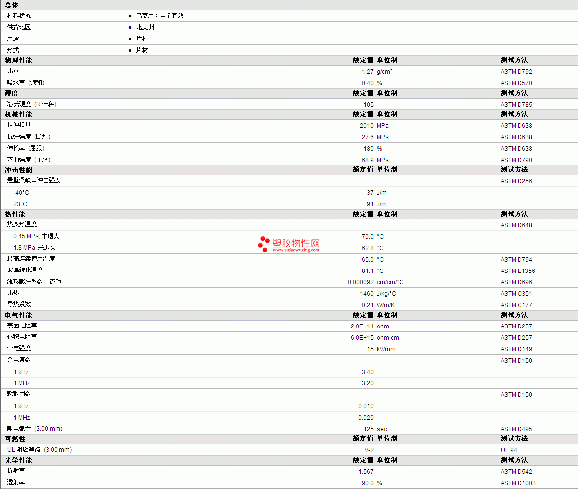 | 比重 | 1.27 | g/cm³ | ASTM D792 |
