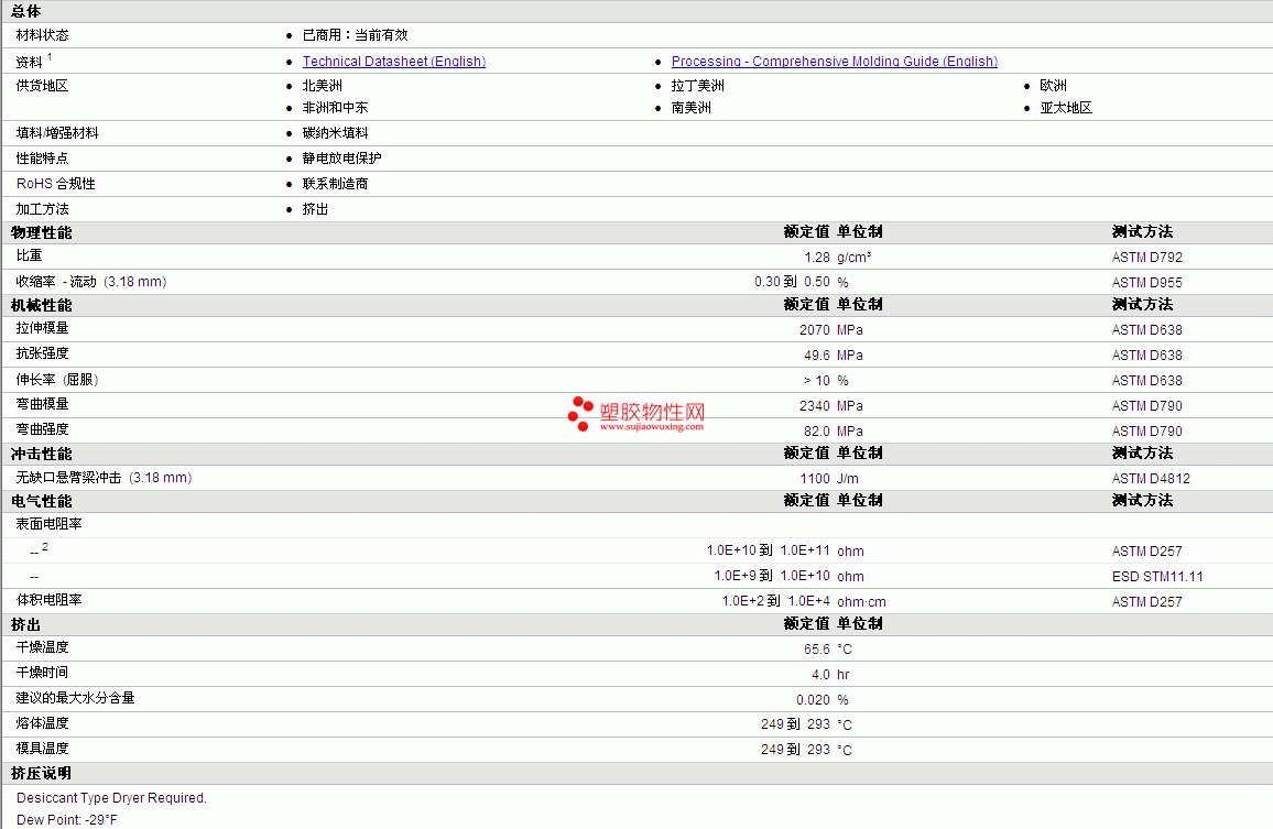 | 拉伸模量 | 2070 | MPa | ASTM D638 |