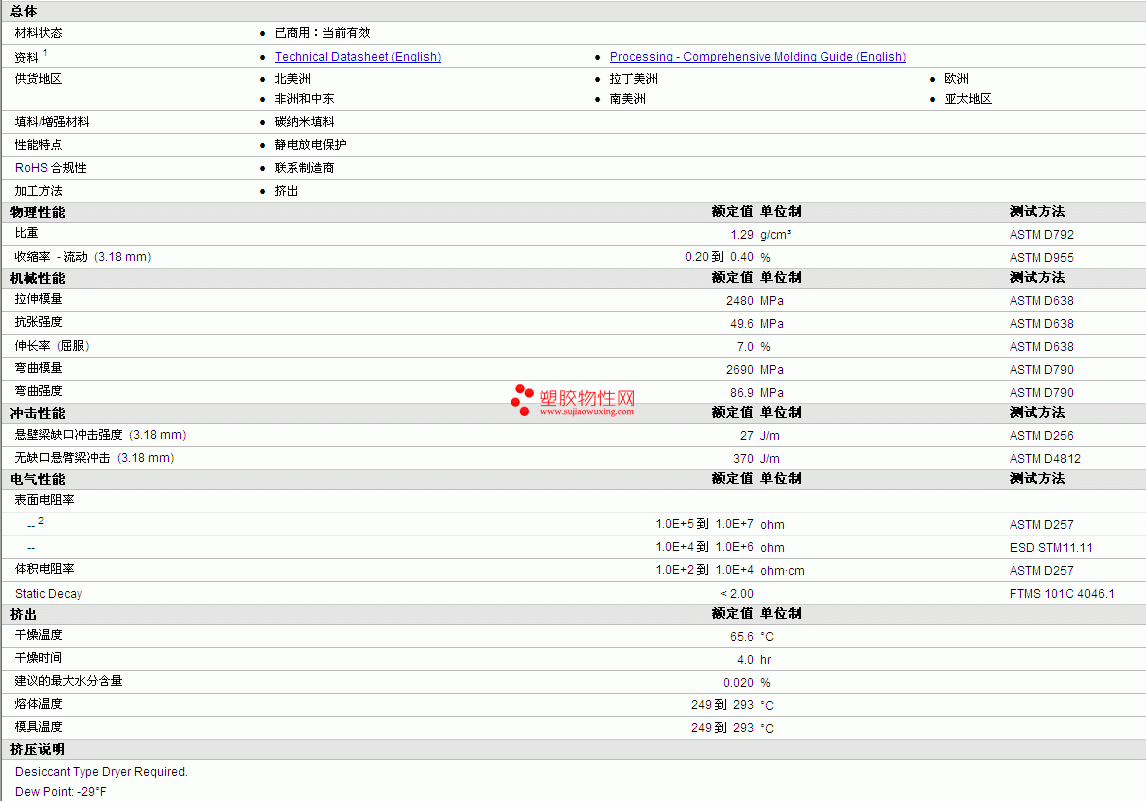 | 拉伸模量 | 2480 | MPa | ASTM D638 |