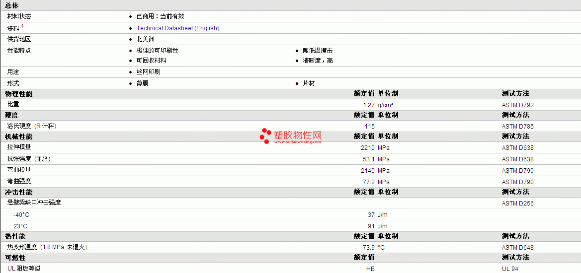 Spartech Polyester PETG SP-7120物性表更多资料见图