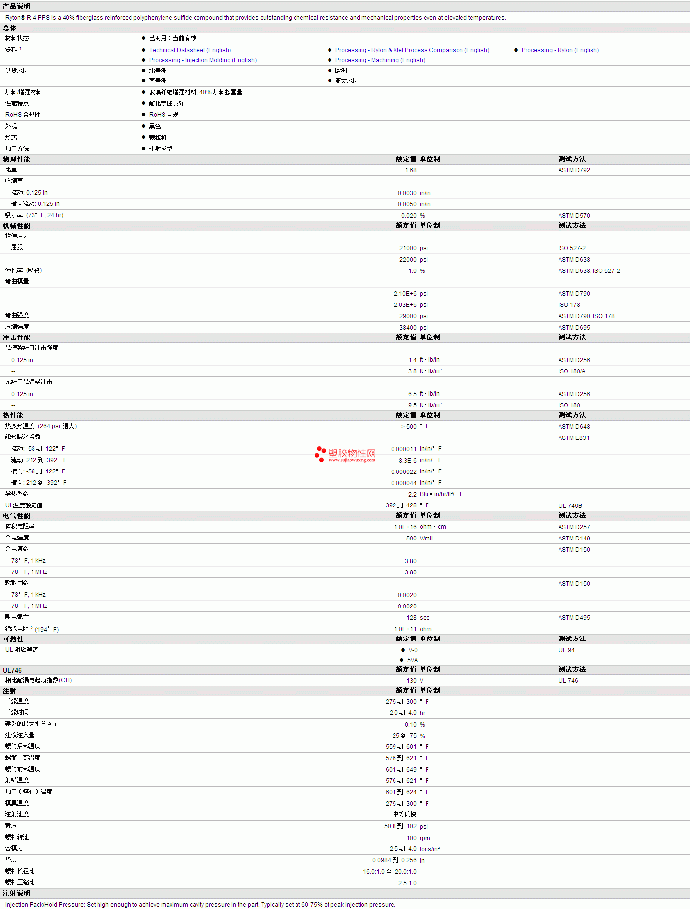 Ryton PPS R-4 02物性表 详细情况如图