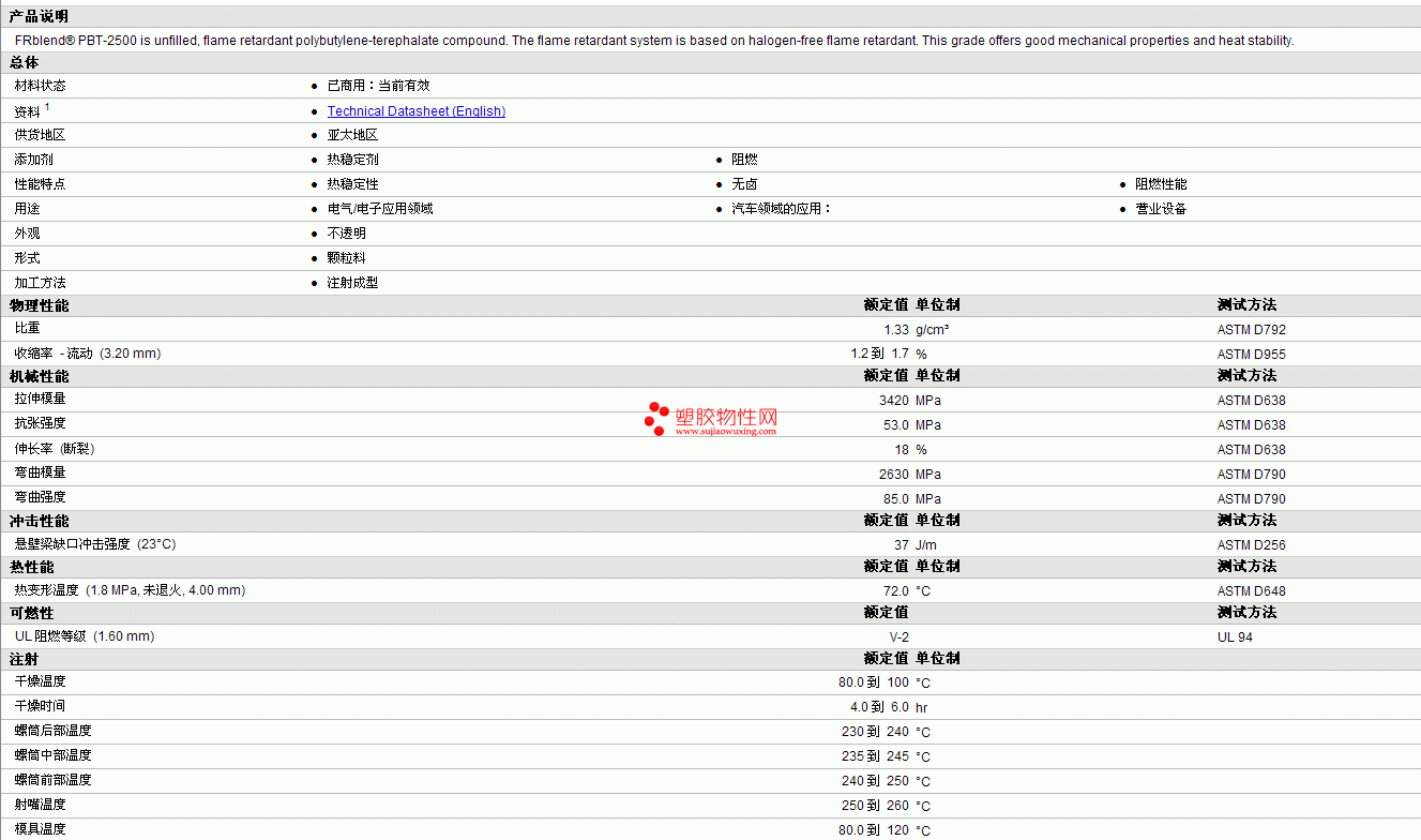 FRblend PBT-2500物性表 见图片