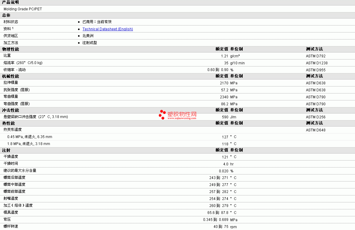 NEXUS PC/PET PC/PET7901物性表如图所示