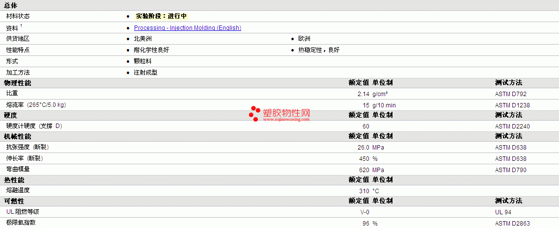 Dyneon THV PFA X 6515 UHP物性表如图所示