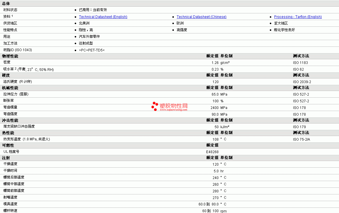 Tarflon PC/PET SC-429物性表详情见附件