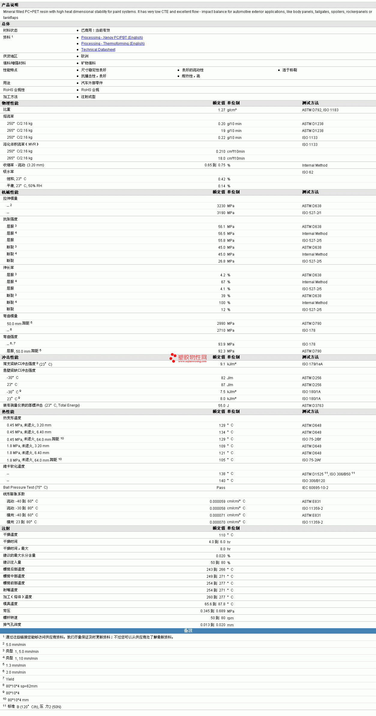XENOY PC/PET X5410 Resin物性表详情见附件